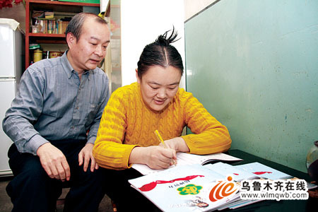 張凌在哥哥張凱旋的指導(dǎo)下寫(xiě)日記。(記者丁瑜攝)