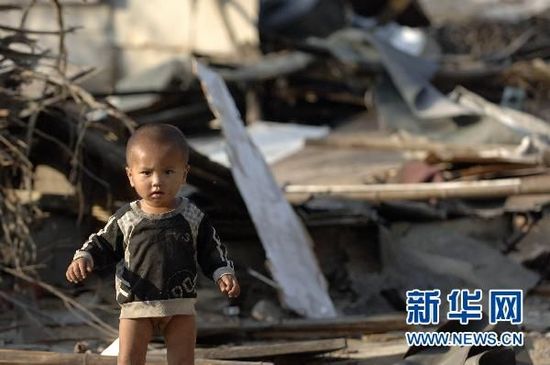 男孩兒蔡全東在自家被拆掉的房子前,這天他和父親來收拾自家一些有用的東西(2月9日攝)。 新華社記者 侯建森 攝