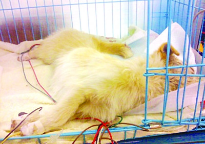 南京女孩“嘿嘿麻麻”面對此景,開始懇求醫生盡力救治,被感動后的醫生最后答應先治療3天時間,然后就要看這條小狗的造化了。