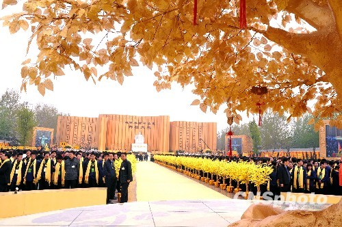 資料圖:2010年4月16日(農歷三月初三),庚寅年黃帝故里拜祖大典在河南新鄭市舉行。當日,來自海內外的兩萬多名嘉賓歡聚于此,共拜軒轅。 中新社發(fā) 劉書亭 攝