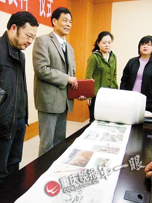 昨日上午10點,三峽博物館接待室,宋文夏老人親自操刀,剪開方形包裝紙,露出一卷直徑半米的長卷。“三峽工程相關報道資料長卷寬30厘米、長120米,搜集了上萬幅各大媒體圖片報道。”宋先生介紹。