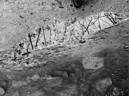 昨日,江北無專廠附近,地面水坑周圍有很多黃色粉末。 網(wǎng)友圖