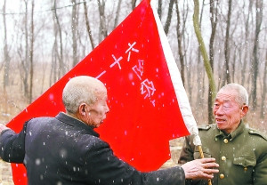 李忠年與李夏春準備了一面寫著“六十一個階級弟兄”的旗幟,以便為來訪者和慰問者講述當年的故事。
