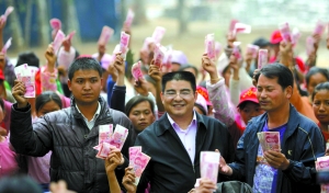 3月16日,陳光標到盈江“3·10“地震災(zāi)區(qū)為受災(zāi)群眾發(fā)錢。張玉杰