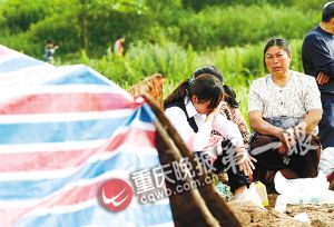 兩男孩的親人守候在出事地點等待處理結(jié)果