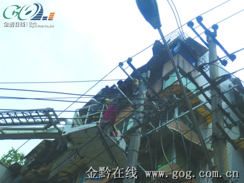 昨日(4日)早晨,貴陽(yáng)市小十字蔡家街巷道一根電線桿上,一名正在維修電路的電工遭電擊,被困電桿,消防隊(duì)員經(jīng)過(guò)一小時(shí)的緊張救援,成功將傷者救下。目前,傷者身體多部位灼傷,正在醫(yī)院接受治療。