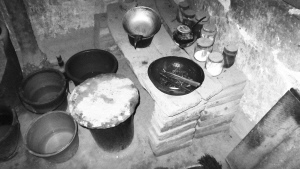 廚房里,半米高的灶臺落滿灰塵、一個盆里盛著涼拌的韭菜。老韓說:“家里有十幾年沒有炒過菜吃了,都是腌菜或者涼拌菜。”