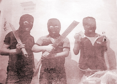 7人實施搶劫前戴頭套持砍刀合影 稱做個紀念(圖)