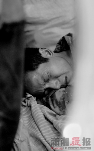 昨日,長沙香樟路方正汽車修理店,一輛正在修理的貨車突然滑行,老板娘被撞身亡。丈夫李先生抱著已經冰涼的妻子,悲痛不已。圖/記者張軼