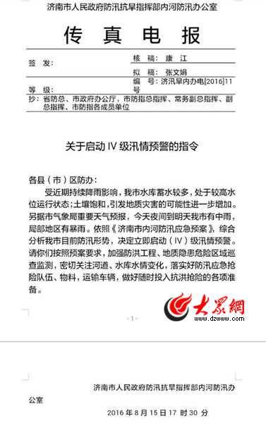 濟(jì)南內(nèi)河防汛啟動(dòng)IV級(jí)汛情預(yù)警響應(yīng)