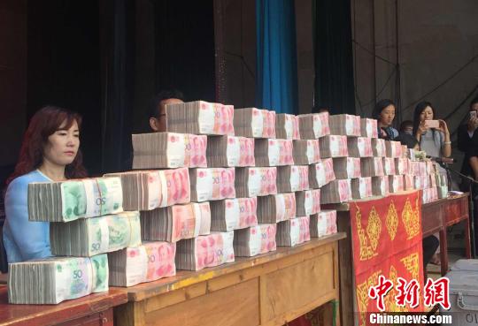 27日,甘肅臨洮縣機場村廣場,圍滿了前來排隊領錢的村民,村支書邊國勝向村里的80余戶農(nóng)民現(xiàn)場發(fā)放種植樹苗分紅現(xiàn)金560萬元,最多的農(nóng)戶領到10萬元分紅。