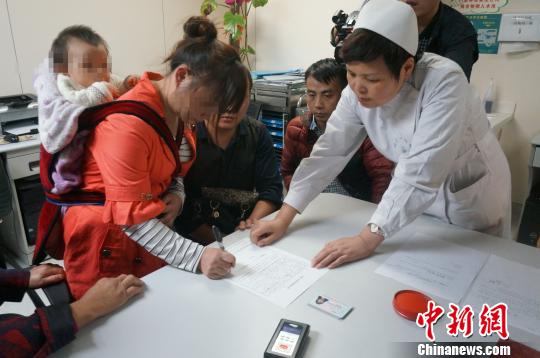 10日晚間,袁明貴的妻子在醫(yī)護(hù)人員、紅十字會(huì)工作人員的見(jiàn)證下簽署中國(guó)人體器官捐獻(xiàn)登記表。 韓章云 攝