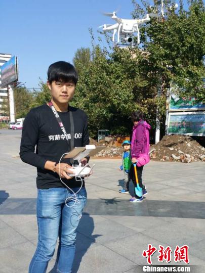 圖為張智杰在旅途中用無人機拍攝風景。受訪者供圖 攝