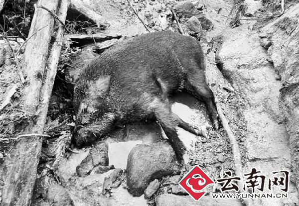 野豬一個(gè)轉(zhuǎn)身慌不擇路地往公路下邊跑去,一頭栽進(jìn)一米多深的山溝里。他跳下去,在狹窄的山溝里與野豬最后搏斗。他又連續(xù)兩棒打在野豬身上,野豬再也支撐不住,慢慢倒下。他又對(duì)著野豬連續(xù)打了十幾下,直到手中的木棒炸開(kāi)了花、野豬被打死為止。