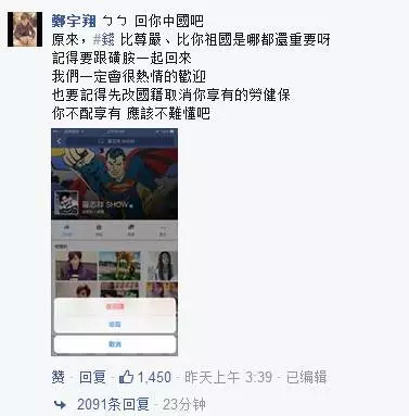 “背祖忘宗、分裂國家的事絕對不能(做)”。又一個港臺藝人,因言受罵。
