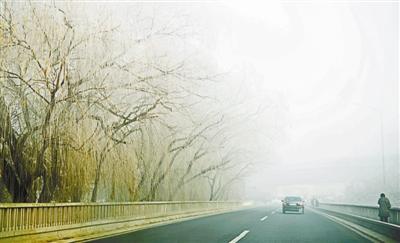 京滬高速十里河橋上,路旁樹上結滿樹掛 攝影/本報記者 王曉溪