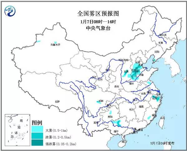 另外,今天河北、河南等地將有強濃霧,能見度將不足200米。7日早晨至上午,河北中南部、天津南部、河南北部、山西中部、山東西北部、浙江北部、廣西中部等地有大霧天氣,其中,河北南部、河南北部、浙江北部等地的部分地區有能見度低于500米的濃霧,局地有能見度低于200米的強濃霧。