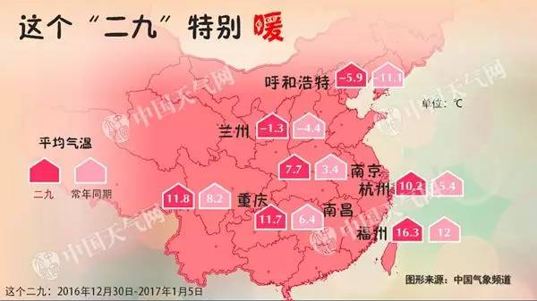 “二九”以來,氣溫卻沒有寒天的意思,特別是內蒙古中部、東北中南部以及浙江南部、江西北部、湖南東部等地區,“二九”以來偏暖了5-7℃,不少省會級大城市打破了常年“二九”平均氣溫紀錄。