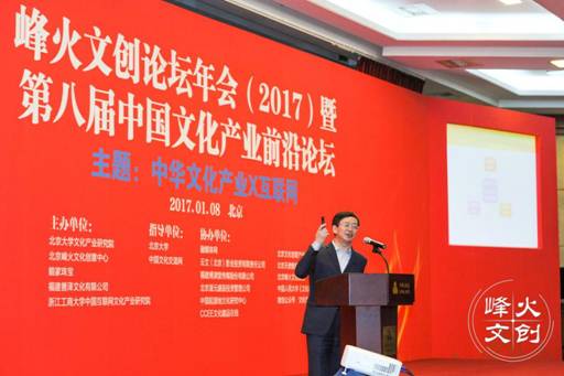 峰火文創(chuàng)論壇年會(2017)暨第八屆中國文化產(chǎn)業(yè)前沿論壇,本屆峰會為期1天,設(shè)立了4場分論壇,1場主論壇及高端交流晚宴。主論壇以“中國文化產(chǎn)業(yè)×互聯(lián)網(wǎng)”為主題,北京大學(xué)文化產(chǎn)業(yè)研究院研究員、北大文化集團總裁許曉峰擔(dān)任學(xué)術(shù)主持,特邀民建中央副主席周漢民,國家行政學(xué)院原副院長、博士生導(dǎo)師周文彰,光線傳媒股份有限公司總裁王長田,中國文化管理協(xié)會執(zhí)行副主席、文化立法專家徐國寶,企鵝影視電影投資業(yè)務(wù)部總經(jīng)理常斌,北京大學(xué)文化產(chǎn)業(yè)研究院副院長陳少峰蒞臨現(xiàn)場與在座文創(chuàng)人分享政策、文化、互聯(lián)網(wǎng)、金融多領(lǐng)域資源,探討在互聯(lián)網(wǎng)+的大形勢下,如何打造可持續(xù)發(fā)展的運作新模式等話題展開思想博弈,給文創(chuàng)從業(yè)者指明方向,實現(xiàn)科學(xué)轉(zhuǎn)型與布局,共促文化領(lǐng)域的良性發(fā)展。