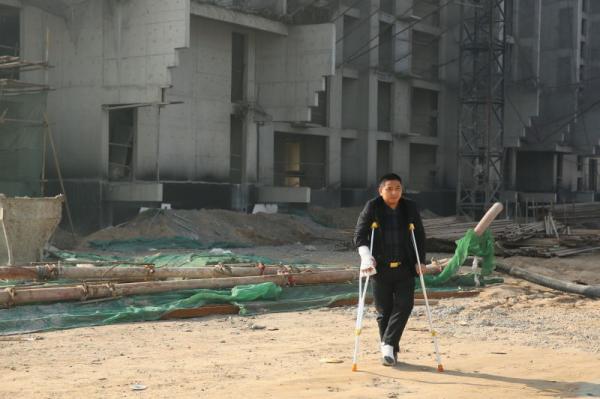 河北定州勝利街建華社區的一個工棚內,重慶涪陵籍農民工趙家友拄著拐杖目光沉重地望著窗外被霧霾籠罩的天空。因為合伙承包的定州市東明家具城商業樓項目885.9萬元工程款被拖欠,去年10月22日他帶工人討要工程尾款時遭追打,趙家友的腿被開發商定州市豐源房地產開發有限公司(以下簡稱:豐源房地產公司)工作人員打骨折。