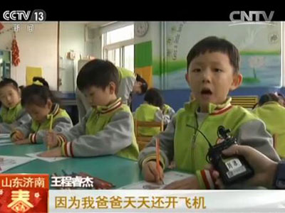 王程睿杰:可是我不愿意,因?yàn)榘职痔焯煸陂_(kāi)飛機(jī),媽媽一個(gè)人在家照顧不了兩個(gè)孩子。