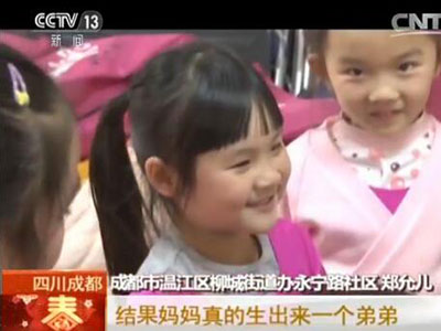 記者:媽媽要生這個(gè)妹妹之前有跟你商量過(guò)沒(méi)有?