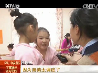 記者:現(xiàn)在會(huì)幫著媽媽照顧妹妹嗎?