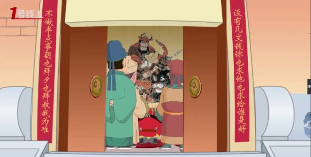 《六月說過年》也是我們擔當傳承和教育使命的一次嘗試,動畫中出現(xiàn)的眾多春聯(lián)、對聯(lián)都是我們精心挑選的,其中絕大部分都是傳統(tǒng)常見的經(jīng)典春聯(lián),也有個別的屬于詼諧幽默,不見得有多么經(jīng)典,但也能看出民間的許多智慧。比如財神廟門上的對聯(lián)“沒有幾文錢你也求他也求給誰是好,不做半點事朝也拜夕也拜教我為難”,看完讓人忍俊不禁,細思量幾成真理:與其坐等賜福難為財神,不如擼起袖子實干興邦。求神不如求己!類似的還有灶神旁的對聯(lián)“上天言好事,回宮降吉祥”和古戲臺上的對聯(lián)“欲知世上觀臺上,不識今人看古人”,寥寥數(shù)字就把敬神的內(nèi)涵和看戲的本質說清楚了,真是神來之筆。