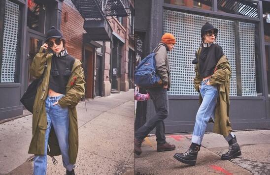 范冰冰近日為雜志擔(dān)任模特,向來都走霸氣女王路線的她,難得以一身男孩子氣的中性裝扮現(xiàn)身,短版帽T配上寬松破洞牛仔褲,外面再穿上一件風(fēng)衣外套,被許多粉絲大贊:“比李晨還要帥了!”雖然高領(lǐng)上衣遮住脖子,卻更突顯她的巴掌小臉,許多女粉絲大呼羨慕。