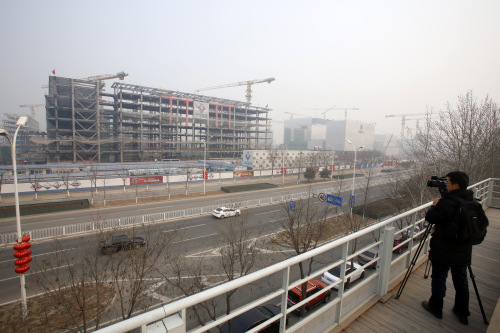 在行政辦公區(qū)施工工地,現(xiàn)場(chǎng)講解員劉蕊介紹,北京市委辦公樓將汲取古建筑的特色,以米黃色、坡屋頂為主要風(fēng)格;北京市政府大樓將更彰顯“京味兒”,如外墻的灰色取自老北京四合院古城墻的顏色。