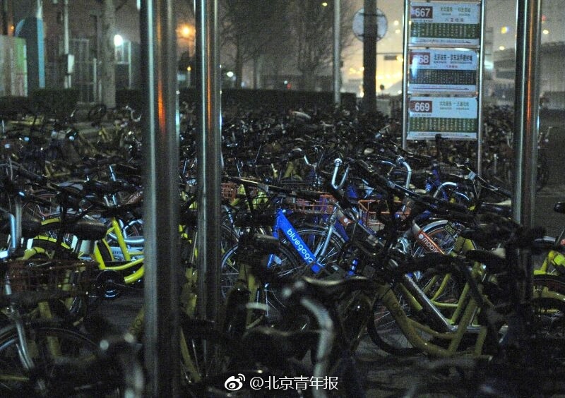 據北京青年報官方微博報道,22日晚高峰后,CBD的北京八王墳東公交車站被上千輛共享單車“圍困”,長達百米的公交站區(qū)域被多個“單車群”占據。北青報記者夜間探訪發(fā)現(xiàn),眾多單車已停在了行車道上,部分單車因影響公交車出站,被人扔進了“車叢”中。除某一家公司的部分單車,疑似有人整理或專門投放于此,其他幾家公司的單車停放較為雜亂。但各公司的車均占據了站臺、人行道和行車道,嚴重影響公交進出站。