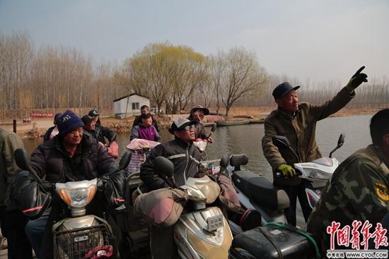 3月25日,周六,天剛蒙蒙亮,河北省廊坊市香河縣王店子村,開三輪車的老人、騎電動(dòng)車的小伙子、抱著孩子的婦女……三三兩兩地來到村口的潮白河邊等待擺渡過河。