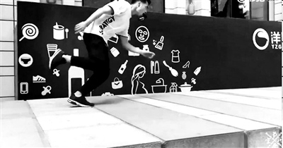 除了街頭跑酷,在侯榮的微博上,還有很多高危險性動作的視頻,包括在樓頂跳躍、做引體向上等等。“雖然家里人一直都在反對,但是我喜歡這樣的挑戰。”他說。