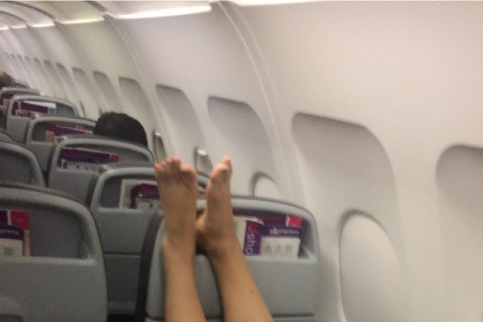 香港網民稱,坐廉航時遇到韓國大媽“晾腳”