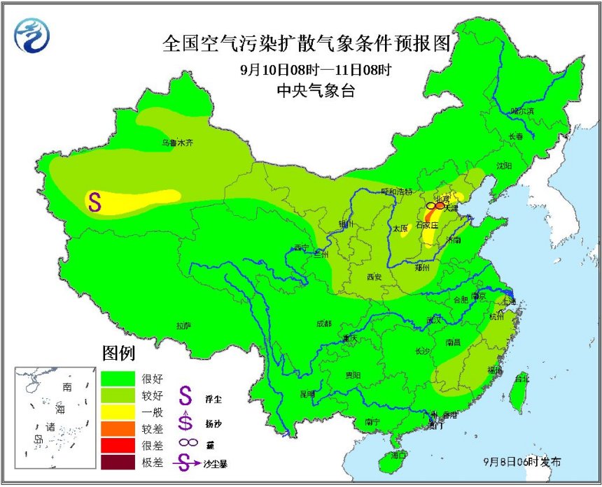 此外,8日至10日,京津冀部分地區大氣擴散條件逐漸轉差,有輕至中度霾天氣。10日夜間起,受冷空氣影響,上述地區大氣擴散條件逐漸轉好。
