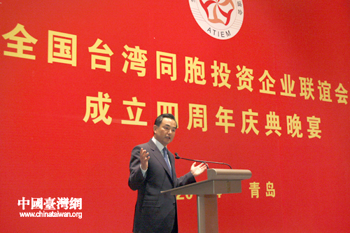 很高興有機會與大家在美麗的青島再次相聚,首先我謹代表中共中央臺辦、國務院臺辦對臺企聯成立四周年表示熱烈祝賀,對新任會長取得的成績表示高度贊賞,向臺企聯所有的朋友們致以誠摯的問候。
