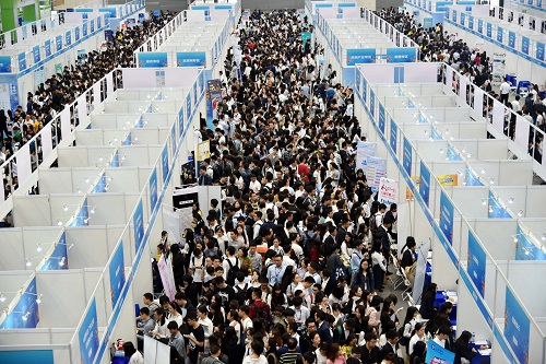 資料圖:在深圳會展中心舉行的第三屆全國高校畢業生春季雙選會現場人頭攢動 新華社記者 周科 攝