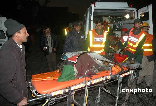 12月27日,臨近首都伊斯蘭堡,在巴基斯坦東北部城市拉瓦爾品第,發(fā)生自殺性爆炸襲擊,前總理貝·布托不幸罹難。圖為爆炸現(xiàn)場有關(guān)人員正在實(shí)施搶救。