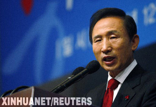 資料圖片:2007年12月20日,韓國當選總統李明博在首爾參加一個新聞發布會。李明博當天表示,他將開啟朝鮮半島無核化的和平時代,并為此采取實用主義外交政策。 新華社/路透