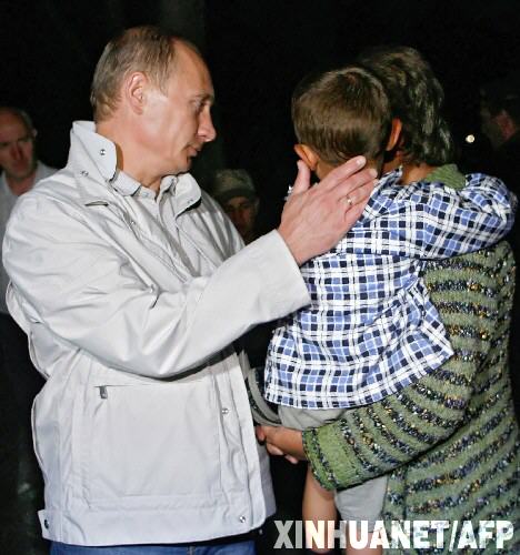 8月9日,在俄羅斯北奧塞梯共和國首府弗拉季高加索,俄總理普京(左二)與逃離格魯吉亞南奧塞梯的難民交談。普京于8日晚飛抵弗拉季高加索,召集會議討論南奧塞梯問題并會見了逃離南奧塞梯的難民。 新華社/法新 |