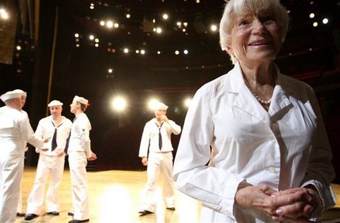 伊迪絲老太應邀于周二參加在紐約舉行的退伍軍人節大巡游,到時會率領一批曾經在第二界世界大戰期間參戰的老兵,在巡游隊伍中與群眾見面。在星期日,她穿上一套白色女護士制服,以1945年的形象露面,觀看一套音樂劇《南太平洋》。5名在劇中飾水兵、身穿全白軍服的男演員,在臺上合力把她抱起。