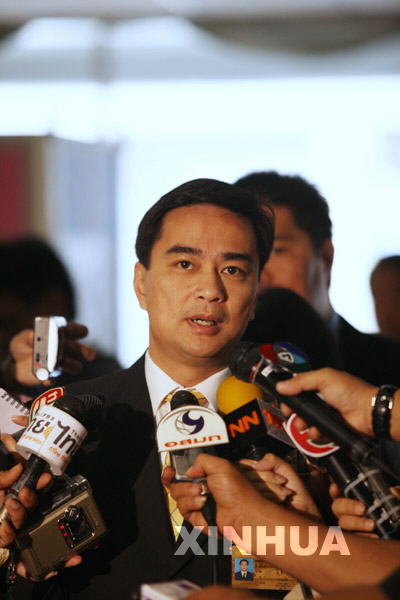 12月8日,泰國民主黨主席阿披實(shí)在曼谷的國會大廈內(nèi)接受媒體采訪。 目前,民主黨主席阿披實(shí)已被提名為民主黨等主要反對黨的總理候選人,并很有可能被推選為聯(lián)合政府總理。新華社記者牛曉雷攝