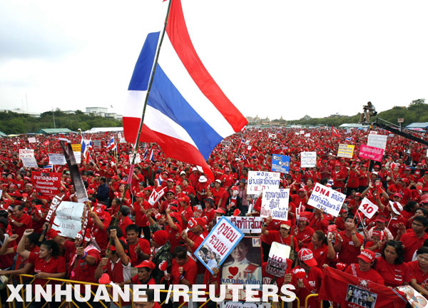 12月28日,大批抗議者在泰國首都曼谷的王家田廣場參加反政府集會(huì)。支持泰國前總理他信的泰國反政府民間政治組織反獨(dú)裁民主聯(lián)盟當(dāng)日在曼谷的王家田廣場和國會(huì)大院前舉行大規(guī)模集會(huì),要求阿披實(shí)總理領(lǐng)導(dǎo)的政府下臺(tái)和解散國會(huì)下議院。新華社/法新