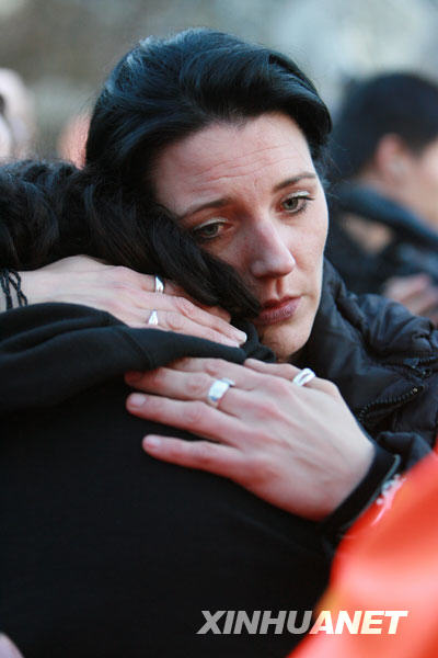 3月11日,遇害者親友們?cè)诎l(fā)生槍擊案的艾伯特維爾中學(xué)附近相擁而泣。新華社記者 羅歡歡攝