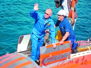 1日,他身穿藍色保溫服,乘潛艇在貝加爾湖中說:“這次潛水過程相當完美。”