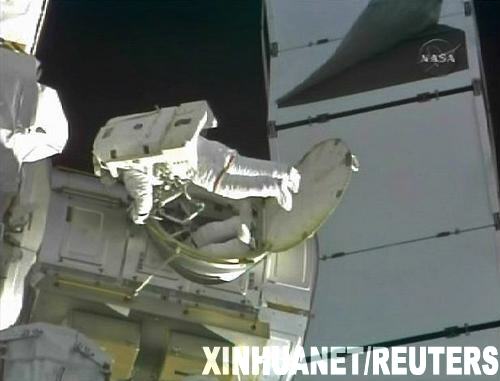 美國(guó)國(guó)家航空航天局9月1日發(fā)布的電視照片顯示,已與國(guó)際空間站成功對(duì)接的“發(fā)現(xiàn)”號(hào)航天飛機(jī)上的宇航員丹尼·奧利瓦斯和尼克爾·斯托特走出國(guó)際空間站準(zhǔn)備進(jìn)行第一次太空行走。他們將換下一個(gè)如小汽車般大小的氨冷卻水箱并完成一些零件升級(jí)與維護(hù)。新華社/路透