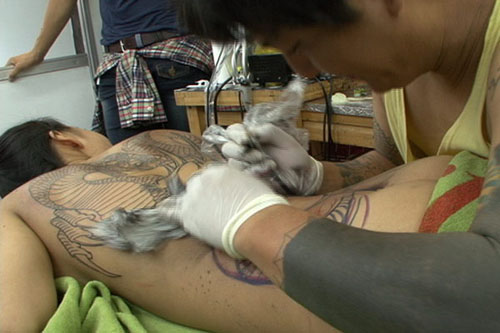 一位紋身師說:“在年輕的女大學生身上紋巨大的龍紋身不是很少見嘛。今天為了迎接特別的儀式特地進行了一次這樣的活動。”