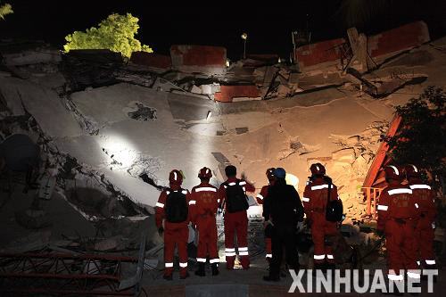 1月14日,在海地太子港,中國國際救援隊隊員在聯(lián)合國海地穩(wěn)定特派團駐地勘查地震災情。當日,中國國際救援隊抵達海地開展地震救援工作。新華社記者 邢廣利 攝
