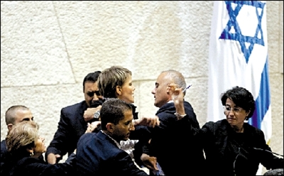 阿拉伯議員哈寧·扎阿比(右)發言時場面一度混亂。 圖/人民圖片