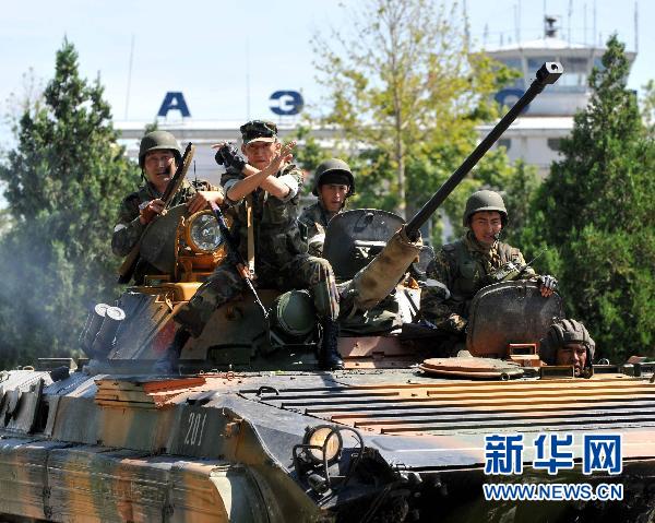 6月14日,士兵在吉爾吉斯斯坦南部城市奧什機場附近巡邏。 新華社/法新